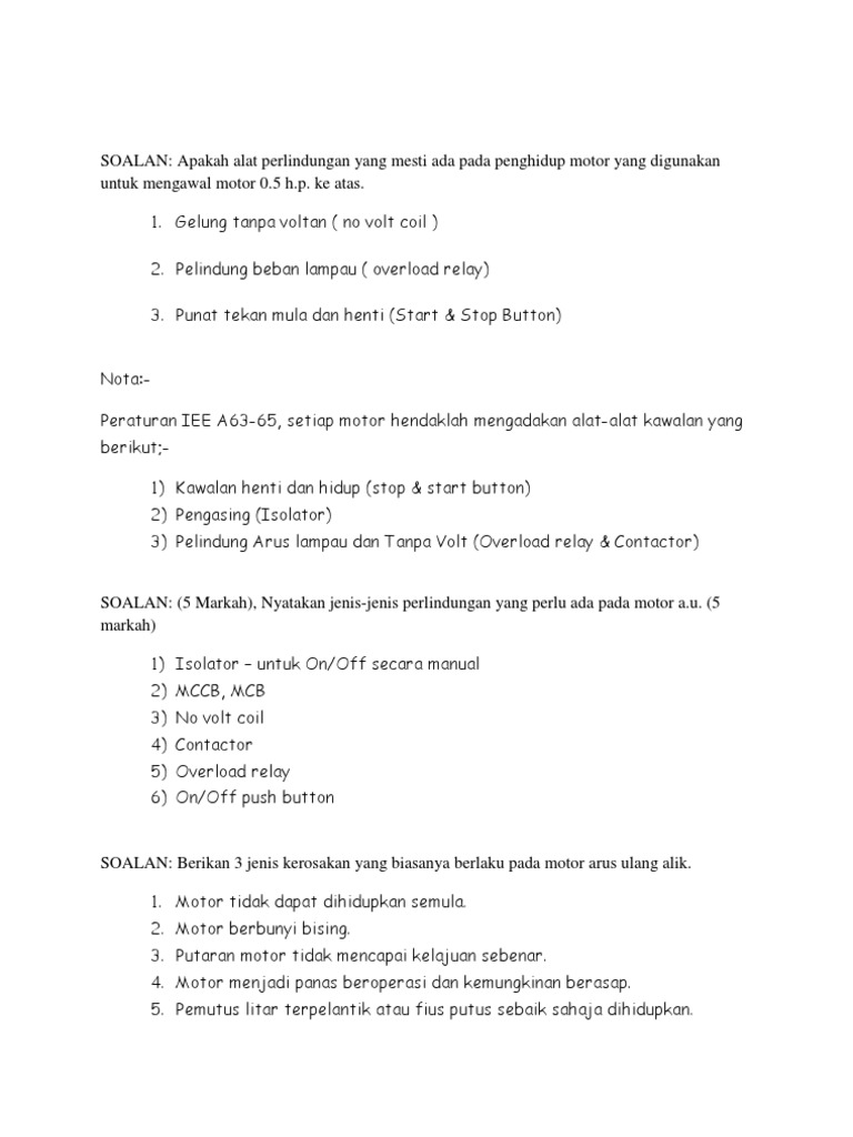 Contoh soalan ujian kabel bawah tanah. Pemutus litar terpelantik atau fius putus sebaik sahaja dihidupkan Soalan 6 Apakah tujuan senggaraan dilakukan terhadap pepasangan motor elektrik. Contoh pendawaian untuk starter motor.